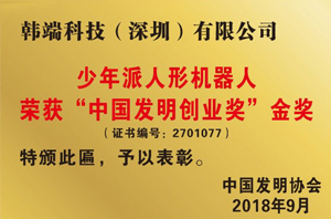 少年派人形機(jī)器人-中國創(chuàng)業(yè)發(fā)明金獎