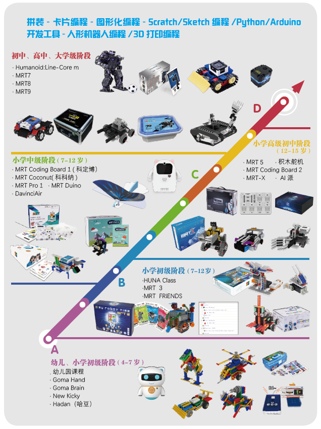 ▲韓端覆蓋全年齡段STEAM教育產(chǎn)品課程體系