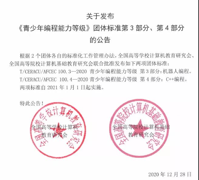 近日,全國高等學校計算機教育研究會聯合全國高等院校計算機基礎教育研究會發布了《青少年編程能力等級》系列團體標準第3、4部分。韓端科技(深圳)有限公司作為教育部教育信息化技術標準委員會單位委員參與起草了該系列標準。