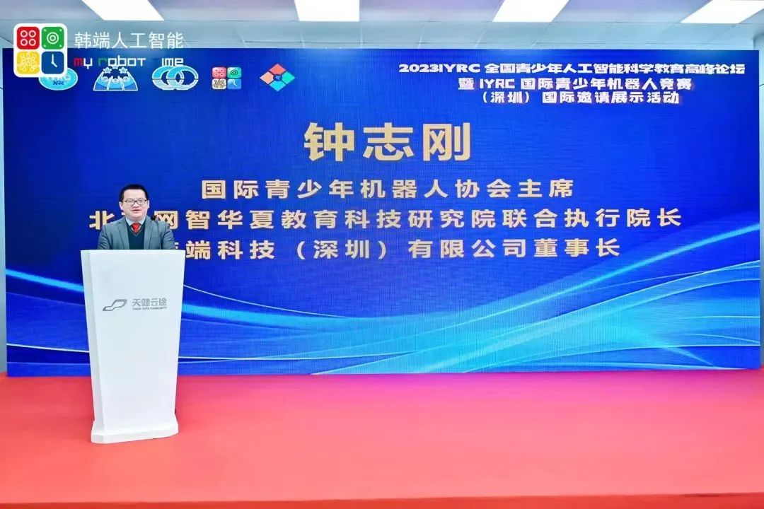 國際青少年機器人協會執行主席、北京網智華夏教育科技研究院聯合執行院長、韓端科技(深圳)有限公司董事長鐘志剛代表主辦方對所有海內外來賓表示最熱烈的歡迎和最誠摯的問候。