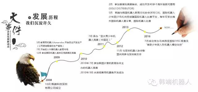 韓端科技(深圳)有限公司是是全球最早從事教育機器人事業(yè)的頂級企業(yè)之一。公司成立于2008年,由韓國、中國、香港三方友好合資經(jīng)營,業(yè)務涵蓋教育機器人的研發(fā)設計、生產(chǎn)銷售、品牌運營、教研教育、課件開發(fā)五大板塊。作為一家注冊在中國的高新技術(shù)企業(yè),公司擁有全球?qū)@?、國家發(fā)明專利、實用新型、外觀專利、軟件著作權(quán)等知識產(chǎn)權(quán)幾百項。公司自成立以來,已持續(xù)在全球推出了HUNA MY ROBOT TIME(MRT)、KICKY、GOMA、BRAIN、CREATIONS、LAND、DINOSAURS、ROBOT HEROES、ROBOT FISH-MIRO、CORE等品牌。