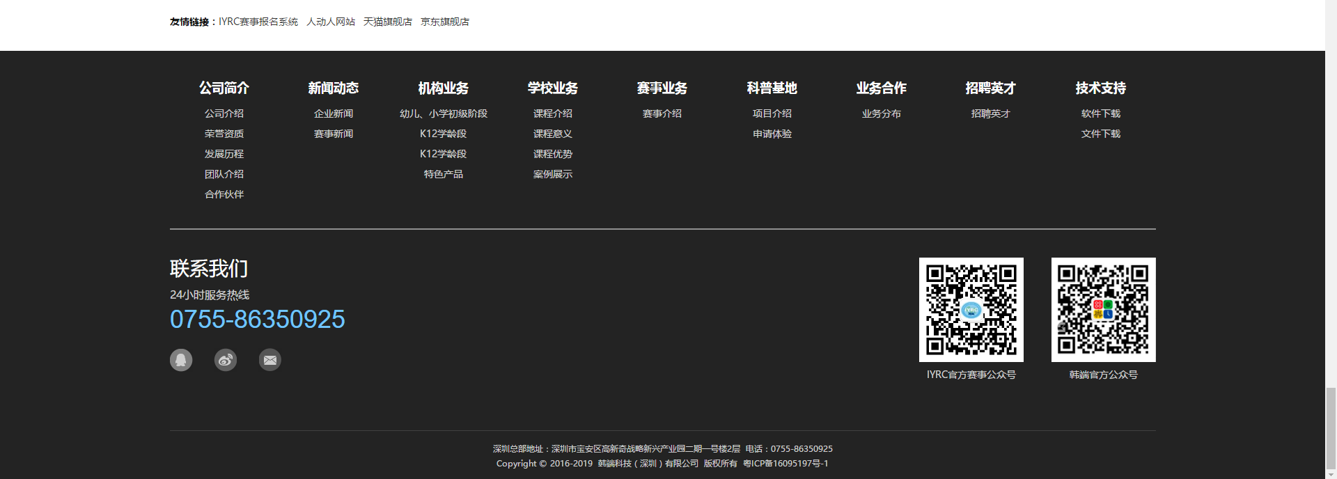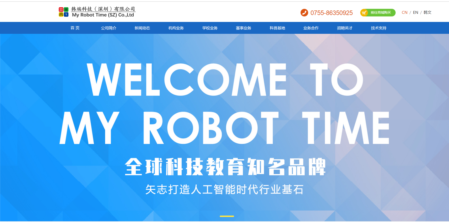 韓端機(jī)器人官網(wǎng)成功全面升級(jí),并于今日正式上線發(fā)布。升級(jí)后的官網(wǎng)圍繞“公司簡(jiǎn)介、機(jī)構(gòu)業(yè)務(wù)、學(xué)校業(yè)務(wù)、賽事業(yè)務(wù)、科普教育基地業(yè)務(wù)”等幾大板塊全面展現(xiàn)了韓端科技近十年來(lái)“機(jī)器人+編程+人工智能+教培體系+全球賽事”的發(fā)展歷程,從“課程體系、課堂教學(xué)、課后檢驗(yàn)、課外實(shí)踐”四個(gè)維度展現(xiàn)韓端機(jī)器人在STEAM教育領(lǐng)域取得的成就,凸顯了韓端科技企業(yè)宗旨、經(jīng)營(yíng)理念、發(fā)展戰(zhàn)略等多個(gè)方面內(nèi)容。官網(wǎng)升級(jí)作為韓端科技對(duì)外宣傳的重要載體,在對(duì)內(nèi)凝聚企業(yè)文化、對(duì)外展示形象中發(fā)揮了積極作用。