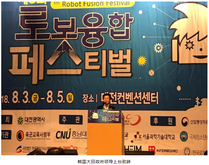 8月2-3日,2019·IYRC(韓國大田)國際青少年機器人競賽在韓國大田國際會展中心成功舉辦,韓國大田市長何太正先生,韓國大田市教育廳廳長南付根先生,韓國大田人民大會議員李尚民先生,韓國大田科技部副部長崔素滿先生,IYRA國際組委會主席Dr.Kyujung Han,IYRA國際組委會執行主席、MY ROBOT TIME集團CEO盧熙鎮先生等領導參加了本次大賽開幕式。